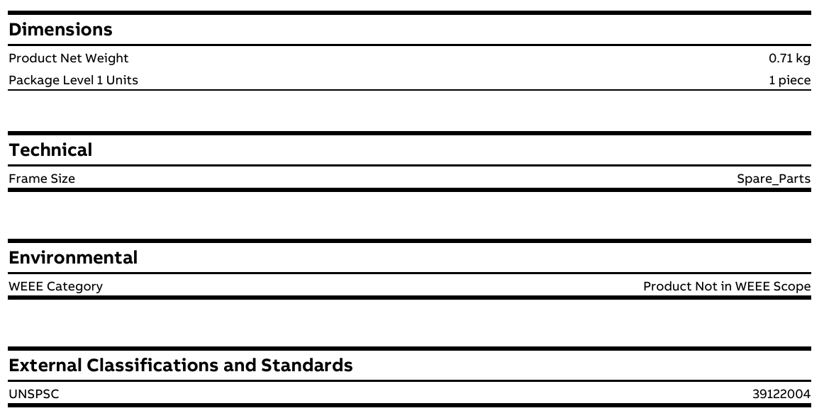 Garanzia di qualità di fabbrica Essendo un componente ABB originale, la qualità e le prestazioni sono esattamente le stesse dell'apparecchiatura originale |