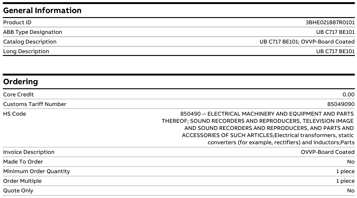 3BHE021887R0101 è un prodotto rivestito con pannello OVVP. Le funzioni e le caratteristiche principali derivano dalle proprietà fisiche e dagli scenari applicativi.