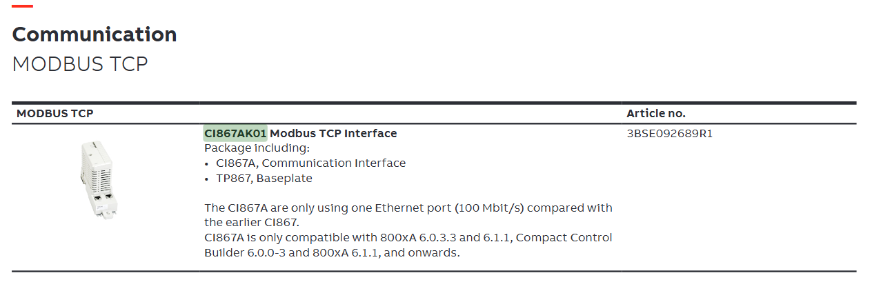 La piattaforma impedisce che questo modulo possa essere utilizzato solo nel sistema AC 800M di ABB. In un progetto di automazione che non sia ABB, il CI867AK01 è completamente inefficace.