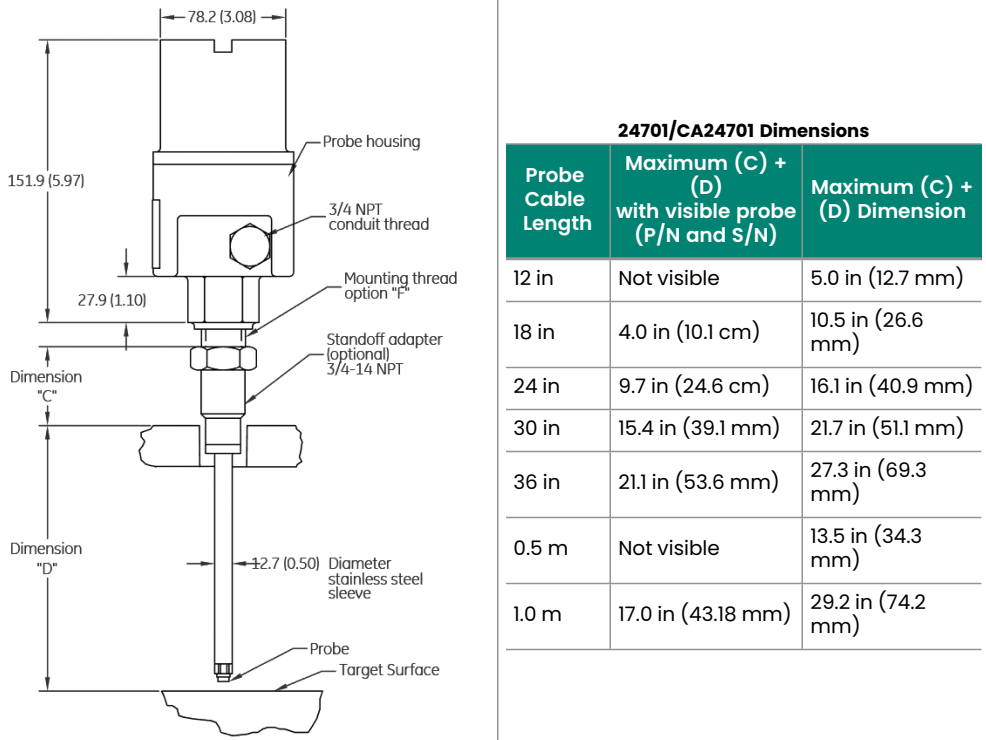 Lunghezza del manicotto della sonda: la lunghezza di penetrazione della sonda è 8,3 in (211 mm).