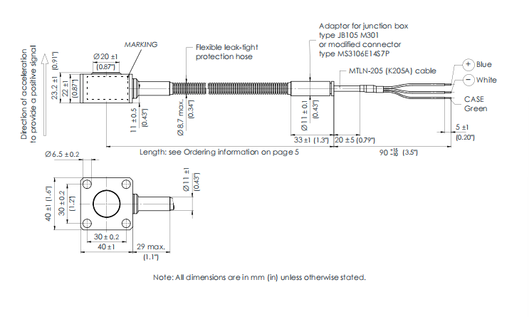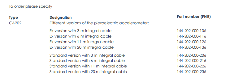 CA202 144-202-000-125 è dotato di un cavo a basso rumore integrale che è protetto da un tubo flessibile di protezione in acciaio inossidabile (perdite) che è saldato ermeticamente al sensore per produrre un gruppo di perdite sigillato.