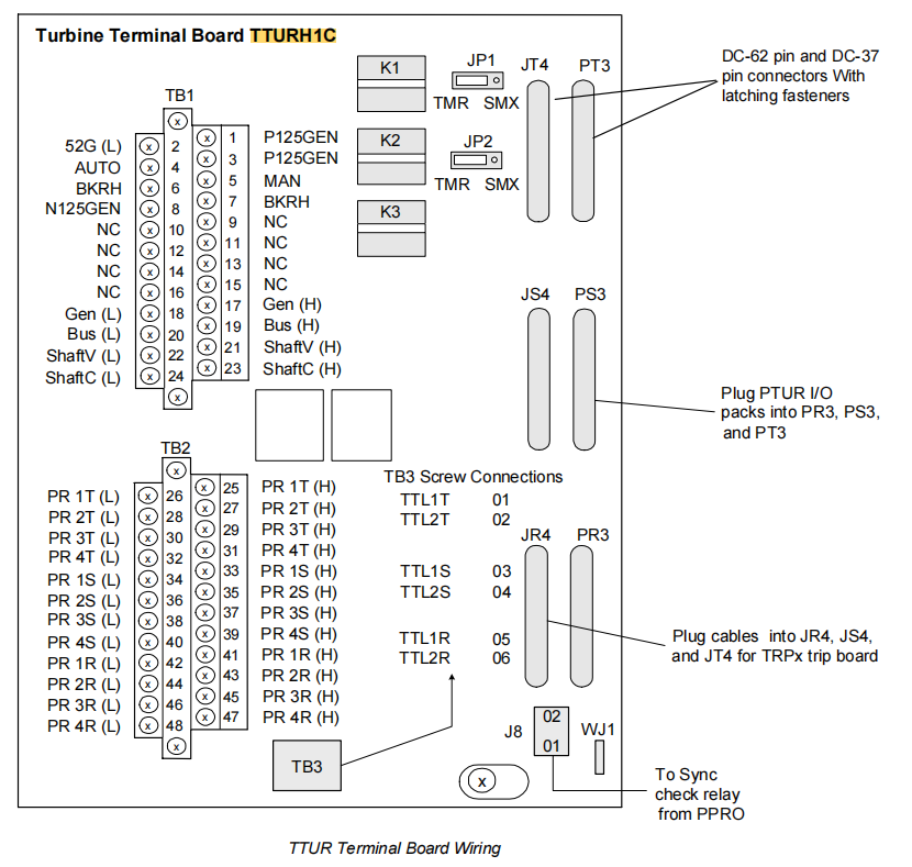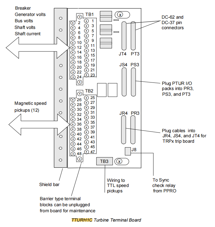 Scheda I/O Mark VI VTUR + scheda terminali TRPXH1B, IS200TTURH1CED è il diretto predecessore di IS200TTURH1CED in Mark VIe.