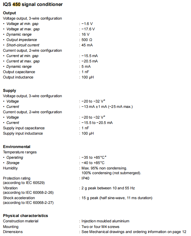 L'IQS450 è un condizionatore di segnale principale della linea di prodotti VM, progettato specificamente per l'uso con la serie TQ400 di sensori di prossimità. Il condizionatore di segnale principale costituisce un sistema di misurazione di avvicinamento completo ed è un componente chiave per la protezione e il funzionamento sicuro delle macchine rotanti.